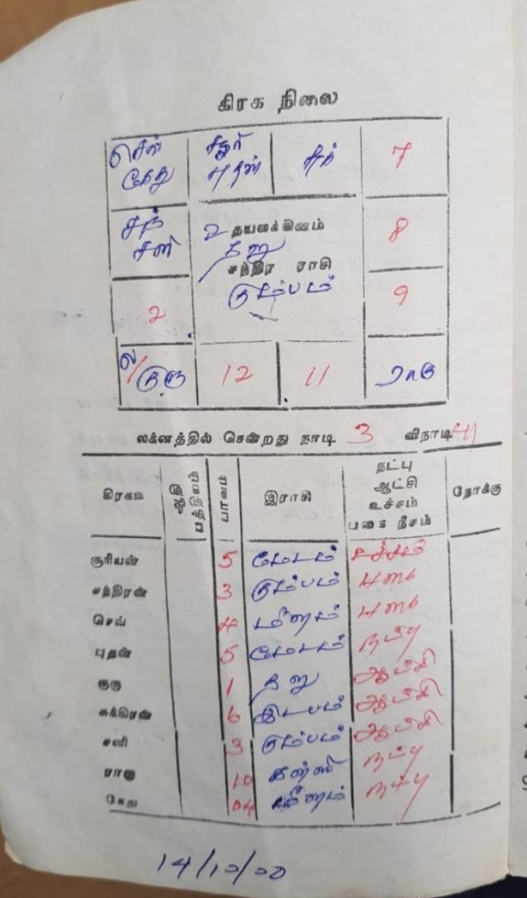 | தனு 3 | விருச்சிகம் குரு | துலாம் 1 (லக்கினம்) | கன்னி புதன் |